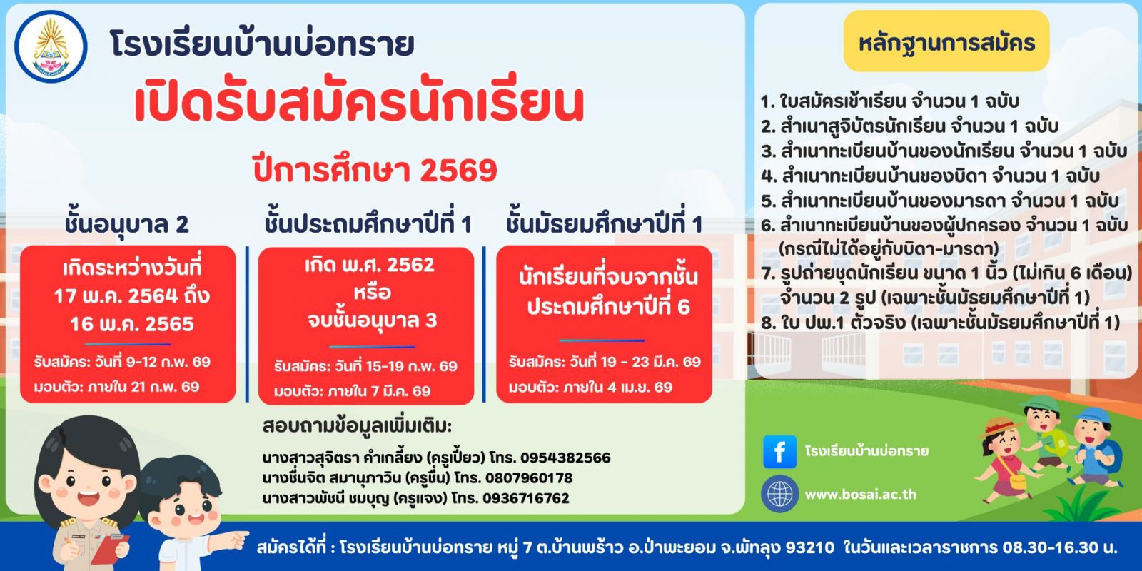 การรับสมัครนักเรียนประจำปีการศึกษา 2569