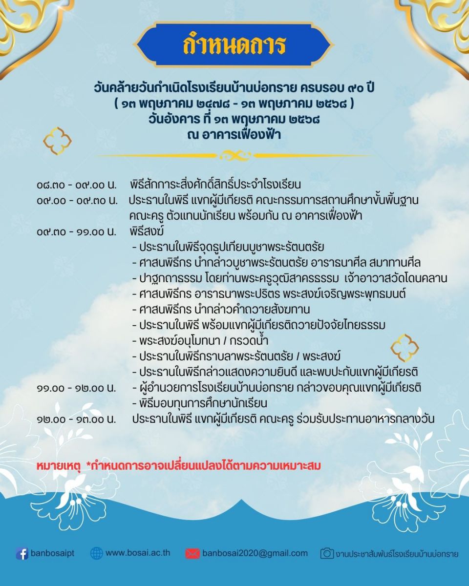 ขอเชิญร่วมงานวันกำเนิดโรงเรียนบ้านบ่อทราย ครบรอบ 90 ปี