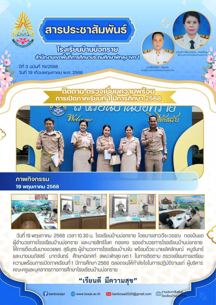 สพป.พัทลุง เขต 1 ติดตาม ตรวจเยี่ยมในการเตรียมความพร้อมการเปิดภาคเรียนที่ 1 ปีการศึกษา 2568