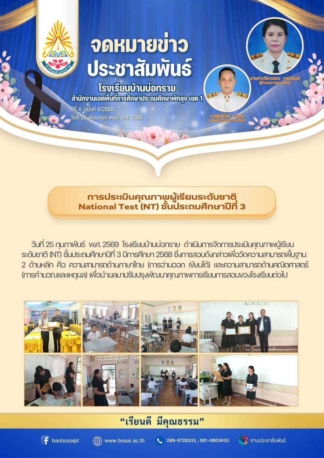 การจัดการประเมินคุณภาพผู้เรียนระดับชาติ (NT) ชั้นประถมศึกษาปีที่ 3 ปีการศึกษา 2568