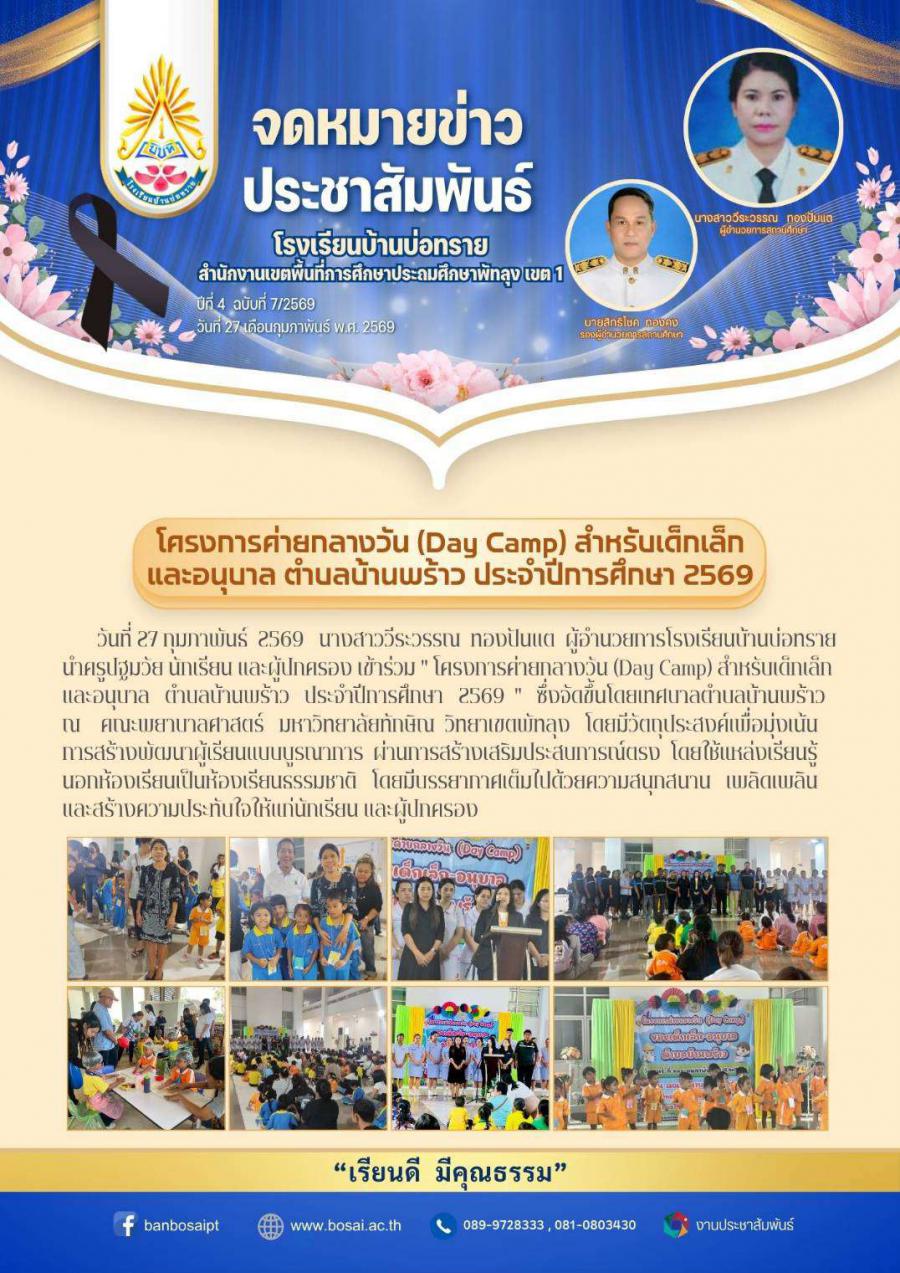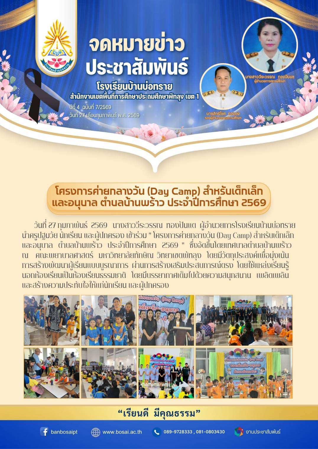 โครงการค่ายกลางวัน (Day Camp) สำหรับเด็กเล็กและอนุบาล ตำบลบ้านพร้าว ประจำปีการศึกษา 2569