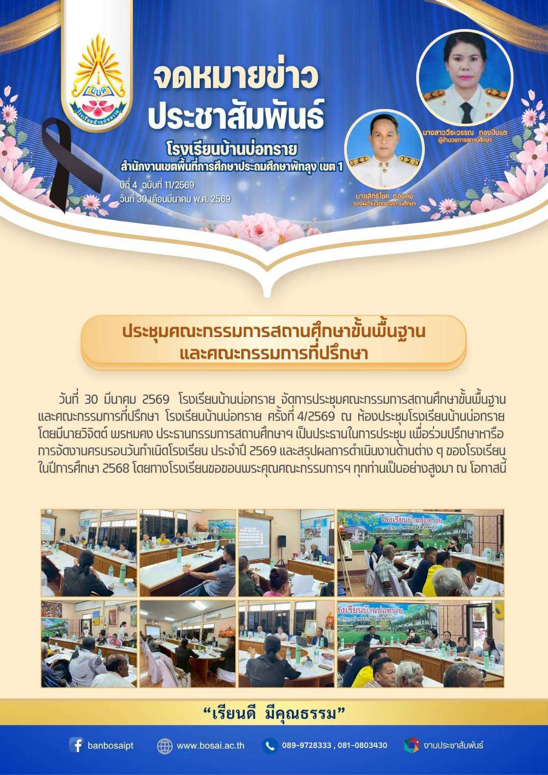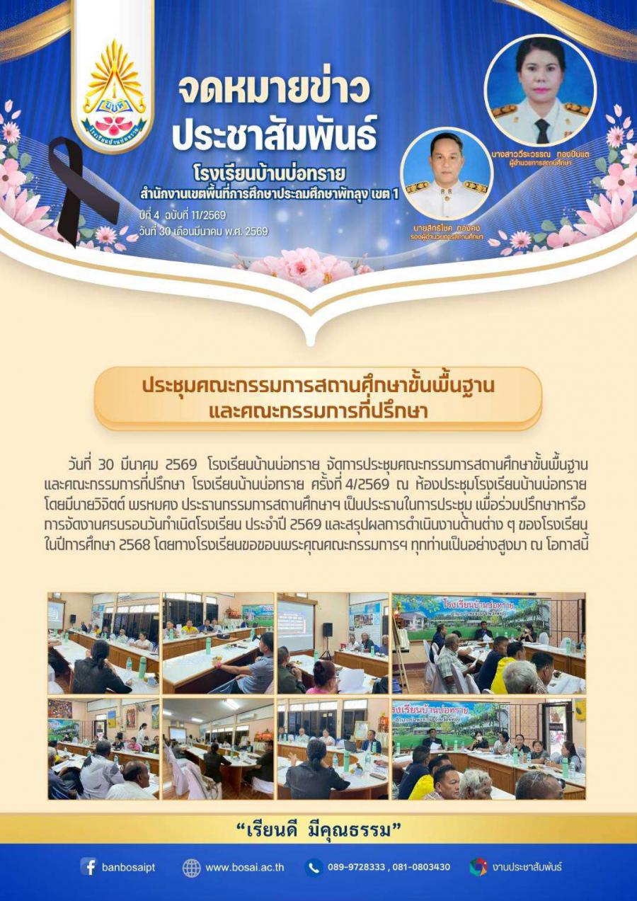 จัดการประชุมคณะกรรมการสถานศึกษาขั้นพื้นฐานและคณะกรรมการที่ปรึกษา โรงเรียนบ้านบ่อทราย ครั้งที่ 4/2569